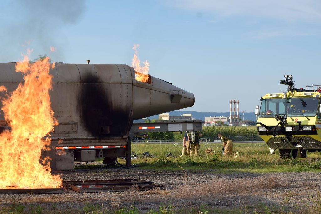 The Canadian Armed Forces (CAF) mobile aircraft fire trainer (MAFT) spent time this summer with 14 Mission Support Squadron’s Fire and Emergency Services team, enabling annual re-qualification training.