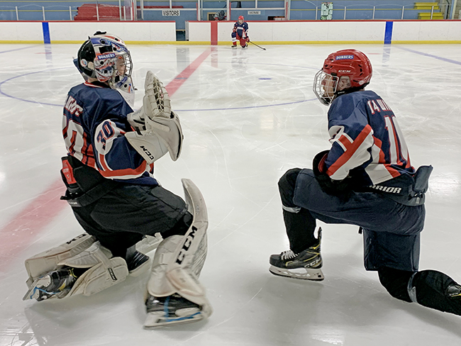 The team started its twice-a-week practice season in October, and joined a community recreational league in Kingston to get game play experience. January 15, they split up, and played a friendly at the Greenwood Gardens during their regular practice to pick up the pace to match what they’ll encounter through the military hockey matches.