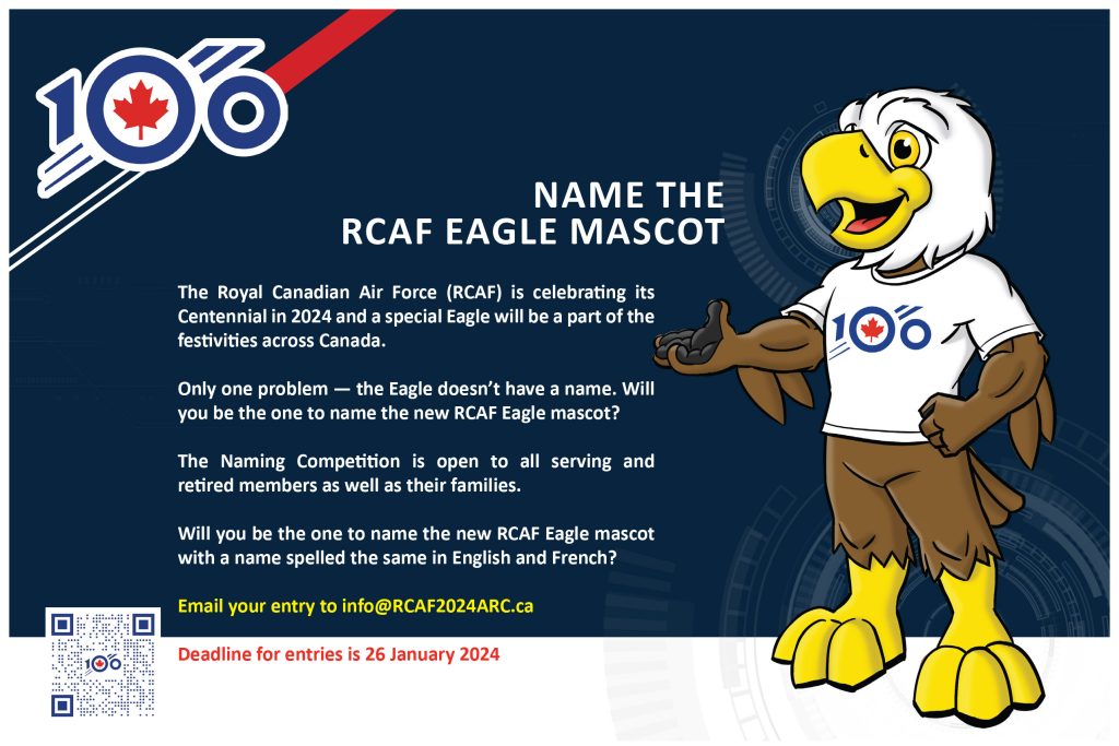 “I am thrilled to invite every military community member to be a part of our exciting journey in naming our new eagle mascot. This is a unique opportunity for us to collectively contribute to the identity of our air force during its centennial year,” says Jacula. “The naming contest is a chance for creativity to soar, and I encourage everyone to share their ideas for a name that truly captures the spirit of the RCAF.”