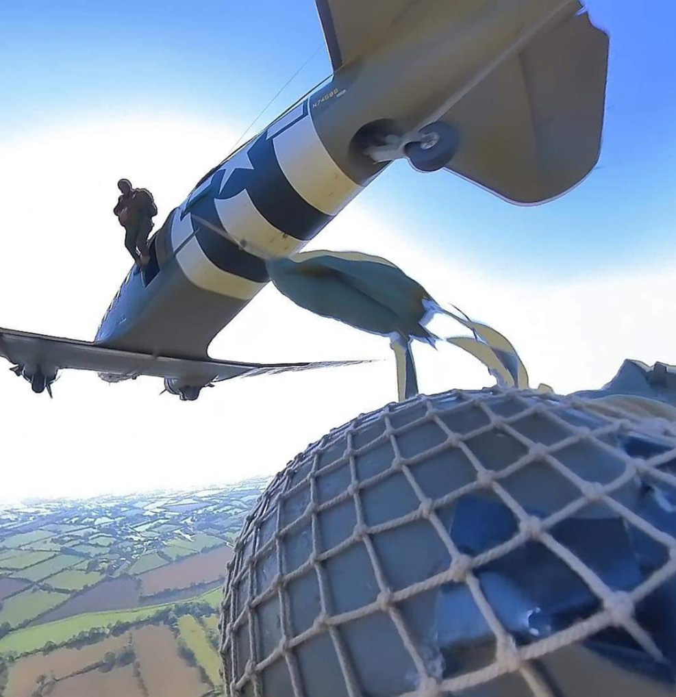 On the morning of June 2, the Douglas C-47 Skytrain “Placid Lassie” left England in a three-ship formation, set to drop the first commemorative parachuting display of D-Day 80th anniversary commemorations in Normandy.