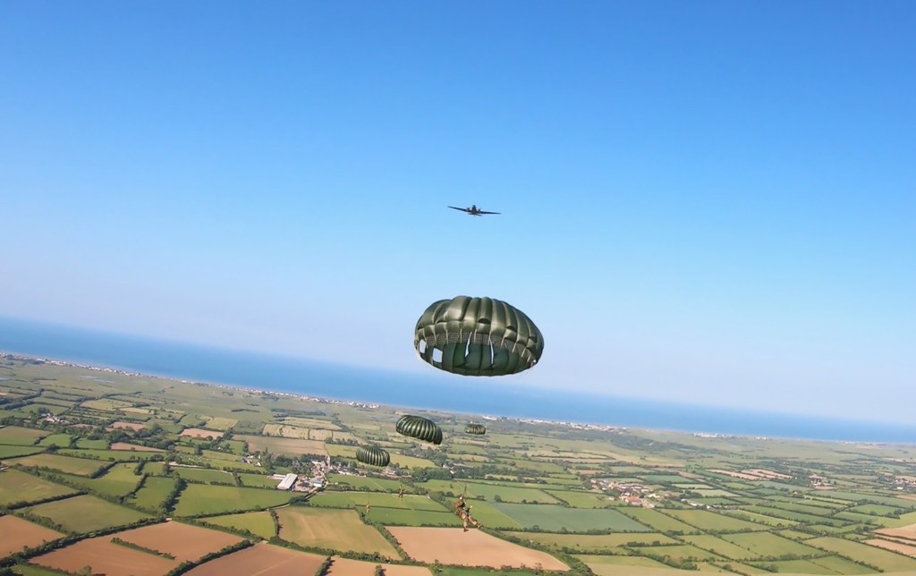 Plans for the Round Canopy Parachuting Team’s (RCPT) Normandy jumps were set in motion when both Beaulieu and Saunders were parachuting in Florida with Kevin Waugh, a friend and coworker from their days working with Heron drones in Afghanistan. Waugh said he’d love to jump in Normandy.”