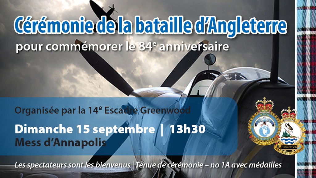 14 Wing Greenwood will mark the 84th anniversary of the Battle of Britain with several events Sunday, September 15.