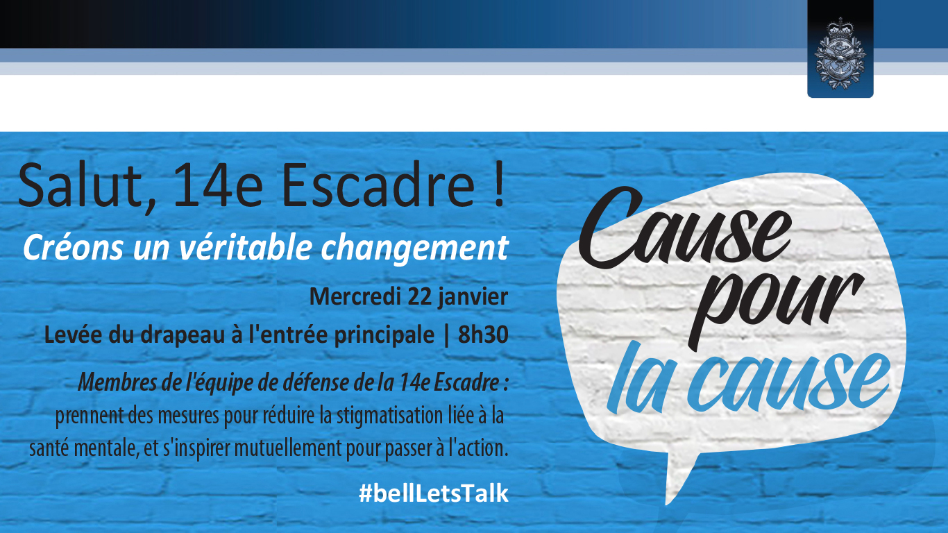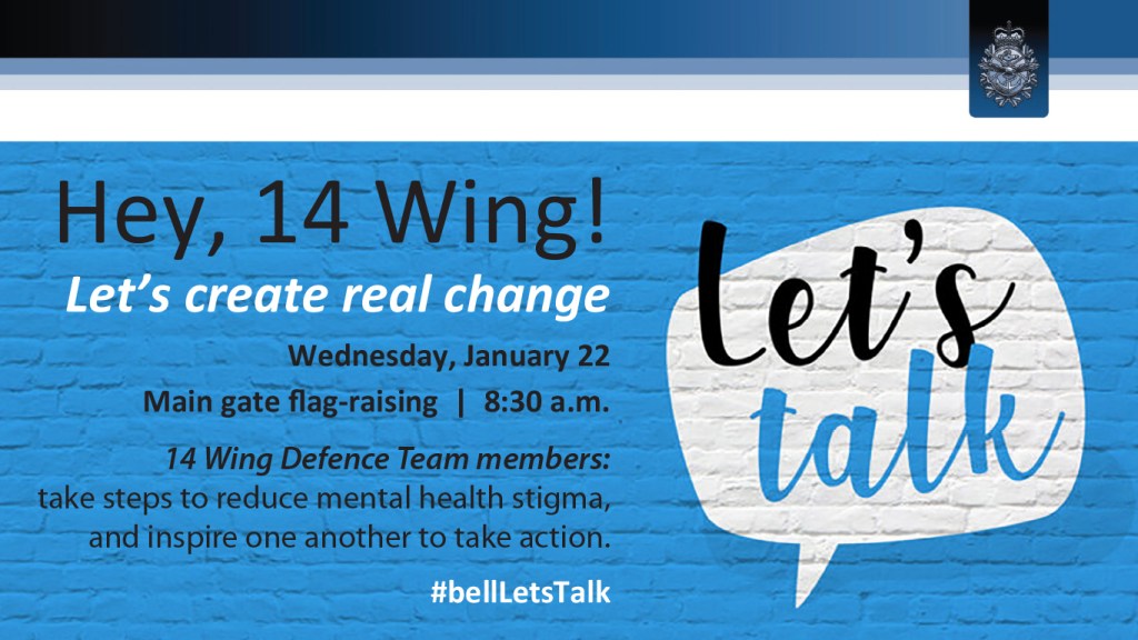 14 Wing Greenwood will raise the flag – and mental health awareness – January 22, part of the national Bell Let’s Talk campaign.