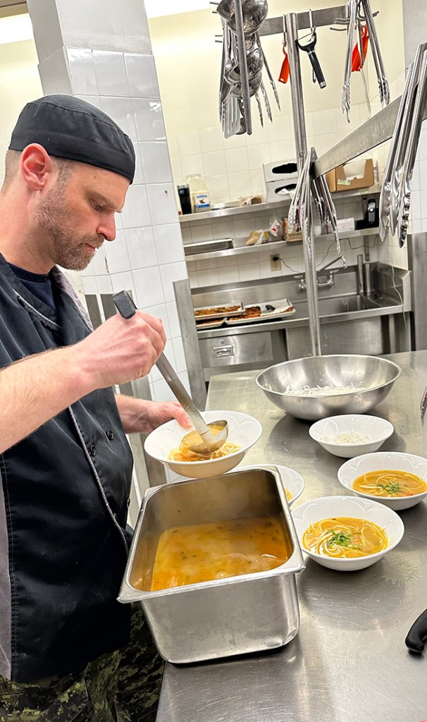 Replenishment Flight staff divided into four teams of six, tasked with a set time to prepare five separate dishes: two main courses, a soup, a salad and a dessert; using provided ingredients. Each team had the option to use the potentially risky “black box” ingredient, a mystery item that, if used in every dish, could win them more points.