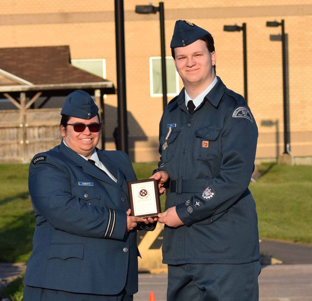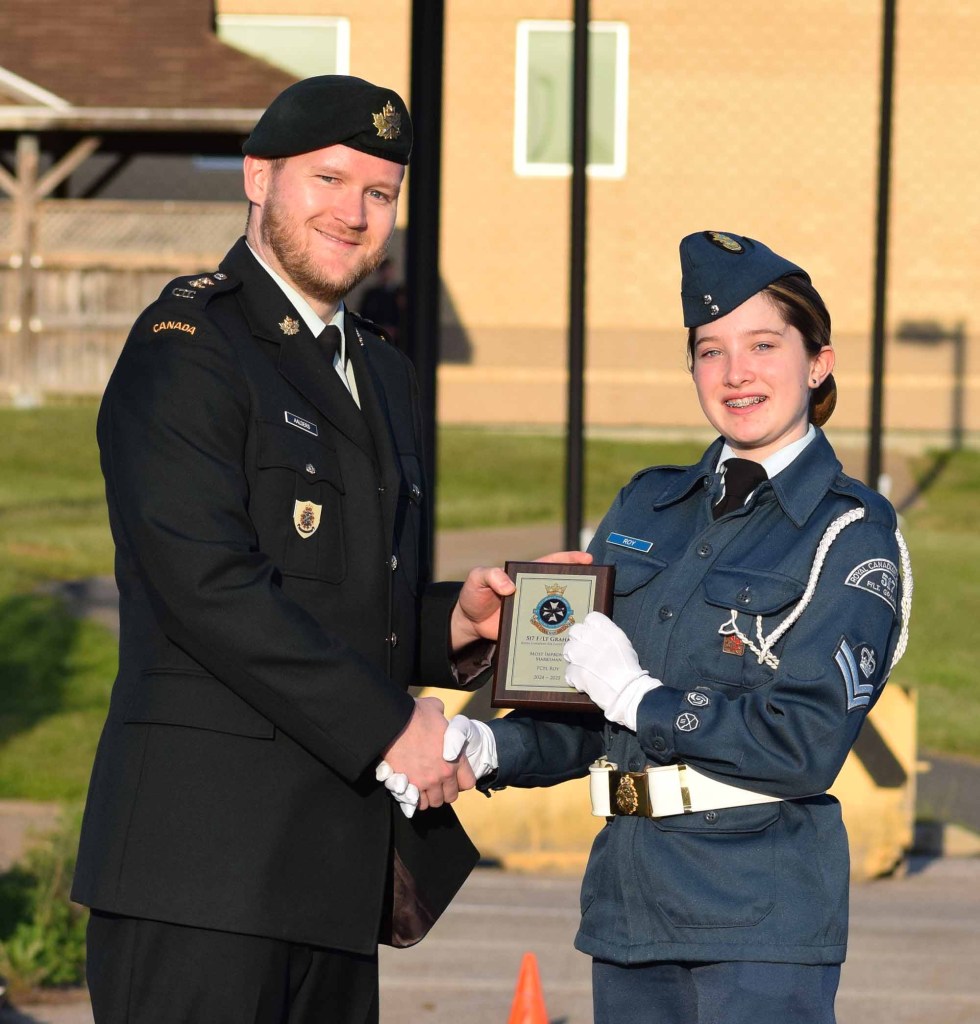One of this year’s notable triumphs was the creation of a squadron pipes and drums band, complete with matching kilts, sporrans and hoses. During the presentation of awards, Commanding Officer Captain Jacqueline Roberts surprised training support staff Master Corporal Spence Campbell and civilian instructor Mike Crowtz with the Commanding Officer’s Commendation for their commitment to standing up the squadron’s new band, stating, “they started all this from scratch, all I did was say, ‘yes.’”