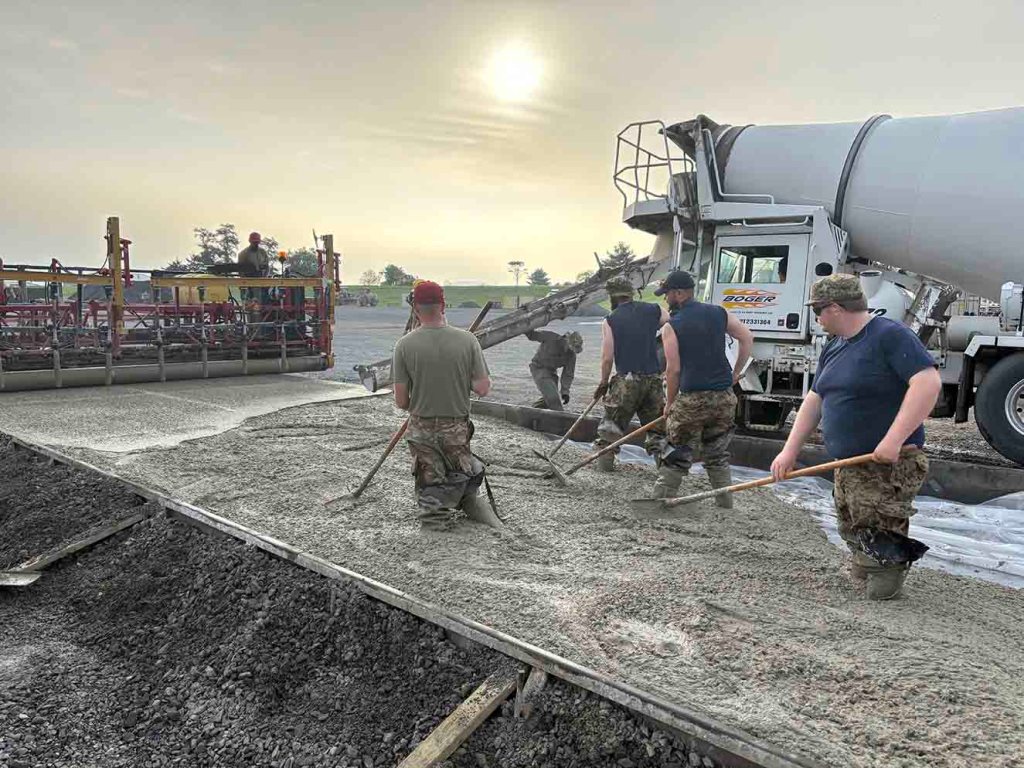 Working seamlessly alongside their American counterparts, the 201st Red Horse Squadron, the team fostered strong camaraderie and created valuable cross-training opportunities across a variety of trades. The deployment underscored the importance of teamwork and leadership, especially under challenging conditions. Early mornings, high temperatures and demanding tasks, such as concrete pours, tested the team’s resilience and adaptability. Despite many participants not coming from a construction background, everyone embraced the learning experience and contributed meaningfully to the mission.