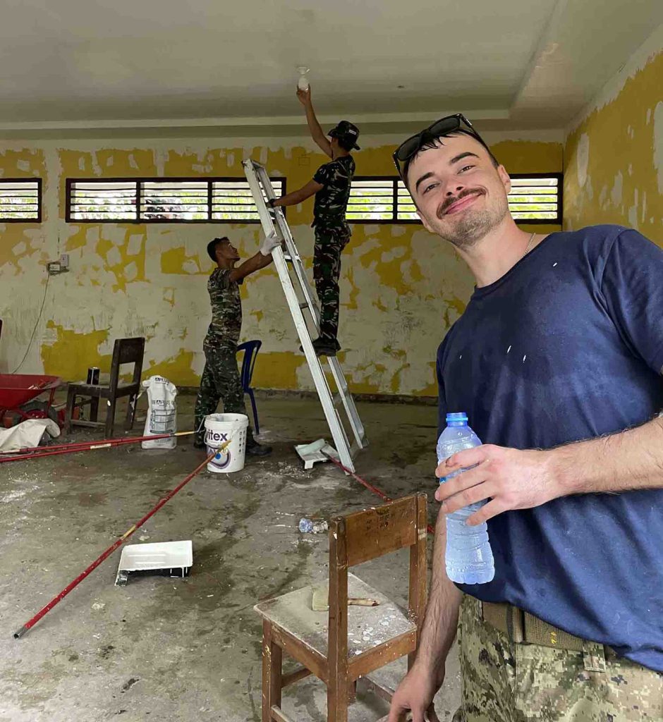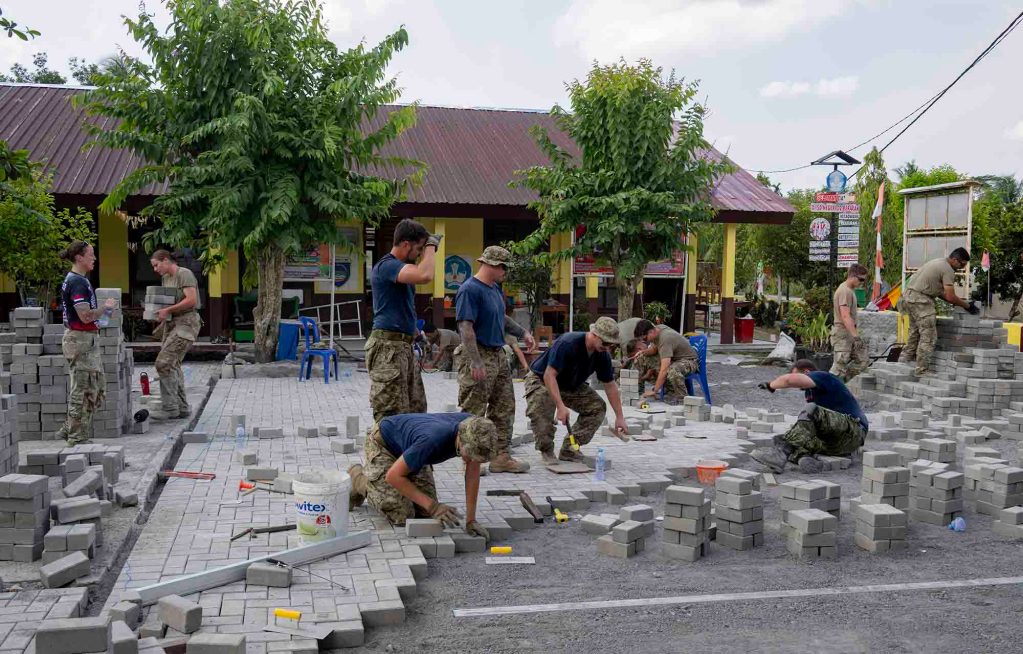 14 MSS members worked on two major construction projects in Baturaja. Working alongside the U.S. Army Corps of Engineers and the Indonesian National Armed Forces, Canadian engineers completed significant school renovations that will leave a lasting impact on the community, including the removal and replacement of roof structures, repairs and installations of plumbing and electrical systems, restoration of interior and exterior walls, painting, concrete work, interlock stone placement, groundwork and landscaping. They also tackled some local road construction work.