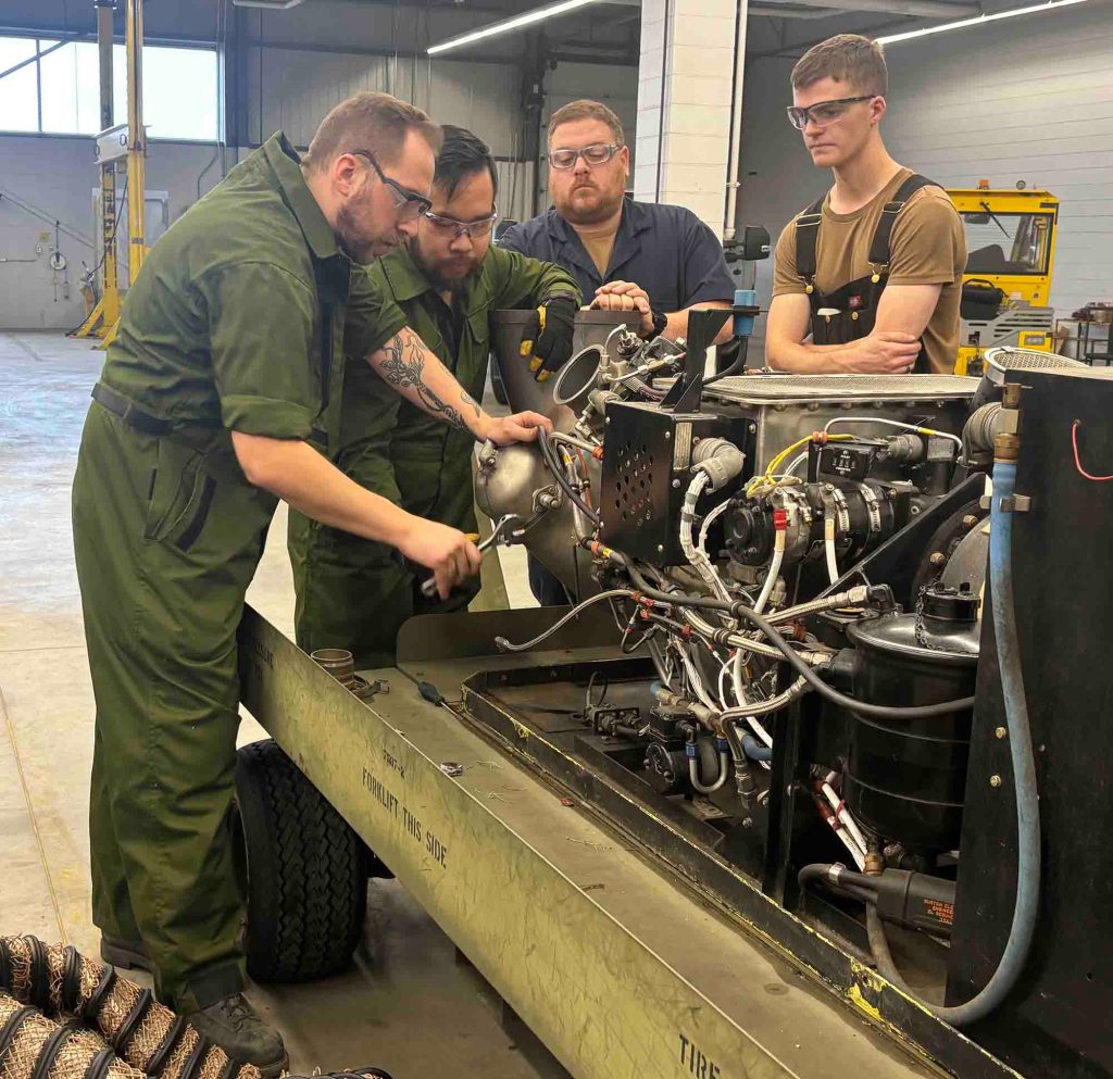 The three-week in-class and hands-on curriculum familiarizes Canadian Army vehicle technicians with “all the equipment that’s needed to get an airplane in the air,” says course warrant Warrant Officer Jean-Michel Gauthier.