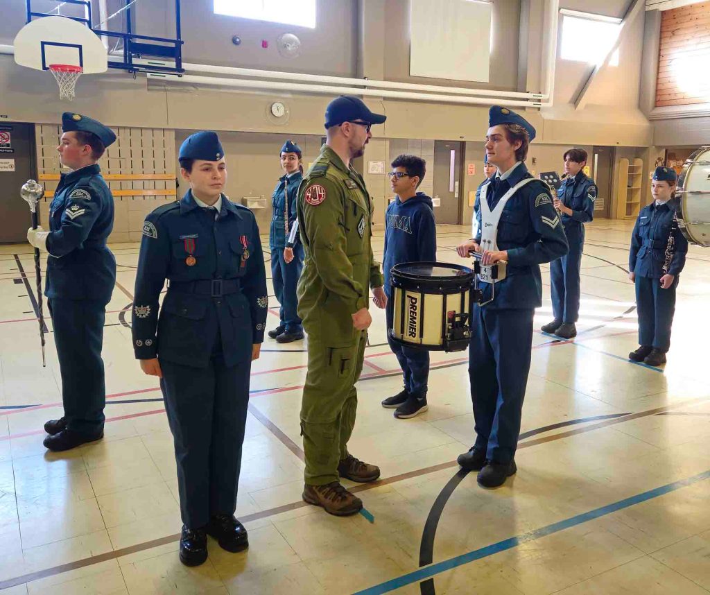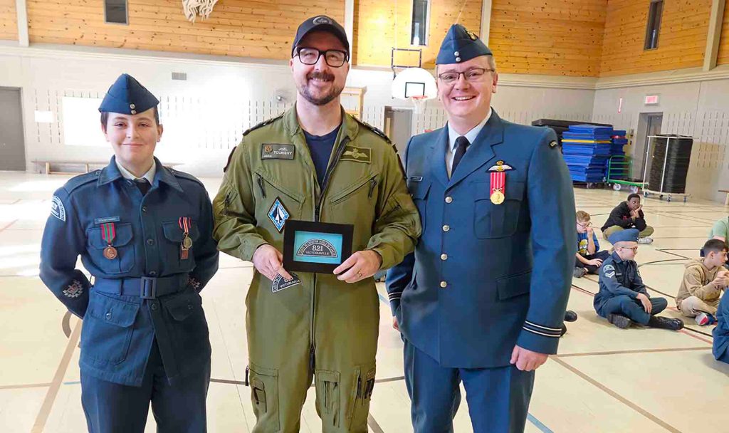 December 20, at École le Manège, 821 Richelieu Victoriaville Squadron welcomed Major Joël Tourigny to talk about his military career and the impact his own time in the Cadet program had on his career. During his presentation, the Cadets learned more about the various aspects of being an air combat systems officer, a position Tourigny has held for more than a decade. The Cadets were very interested in Tourigny’s career path, and they also enjoyed learning more about the characteristics of the aircraft used in this line of work.