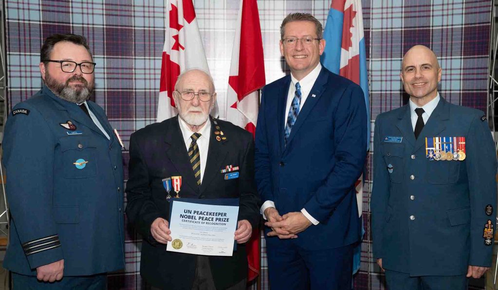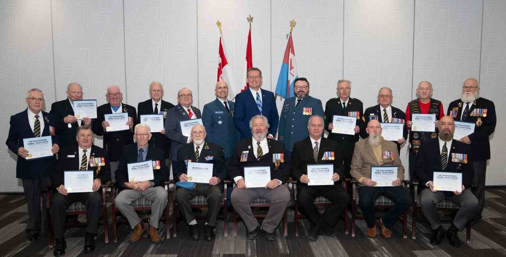 Nova Scotians who answered a “noble calling” as United Nations peacekeepers were recognized at 14 Wing Greenwood January 29, as the province presented a number of Western region retirees with United Nations Peacekeeper and Nobel Peace Prize-recognized peacekeepers (1947 to 1988) certificates.