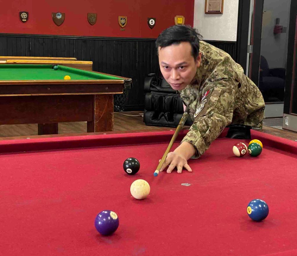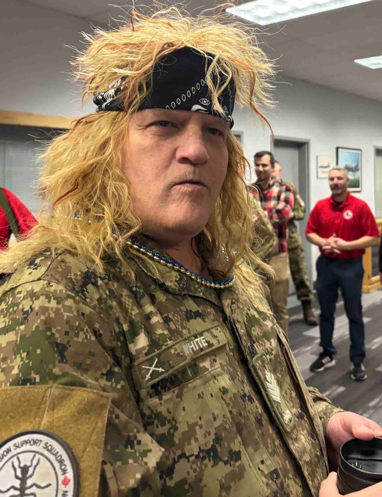 Seven unit teams presented their themed banners, works created to reflect ’80s and ’90s movies and music, including Red Dawn, Teen Wolf, Spaceballs and more. Vachon was in tears – laughter? concern? – with the Deputy Wing Command Branch banner, with its Back to the Future theme, including both Greenwood Gardens past victories and a flux capacitor-influenced look into the future when the venerable rink may not be here on the wing. SAR-Tech figures on 413 Squadron’s Ghostbusters poster, dressed as the ghost-busting attackers, also caught his attention; and he and Harper both took note of 14 Air Maintenance Squadron’s efforts to include all its shops and trades in their banner’s completion.