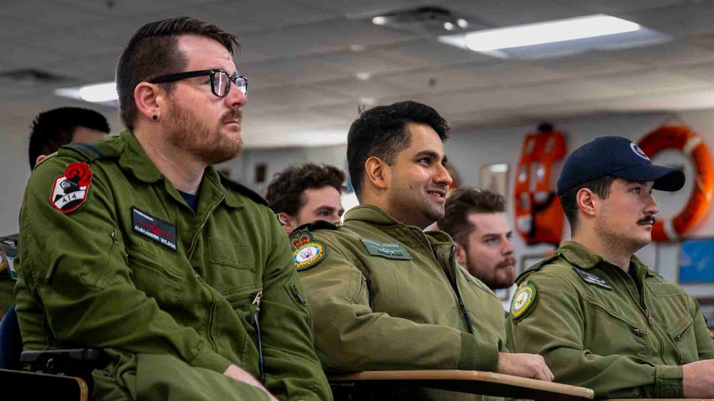 Throughout the week, participants engaged in community briefs, squadron visits and hands-on exposure to operational environments. Representatives from the long range patrol, search and rescue maritime helicopter and electronic warfare communities presented their respective roles, capabilities, aircraft characteristics and work considerations. These sessions offered participants valuable insight into the expectations and realities of each operational pathway.